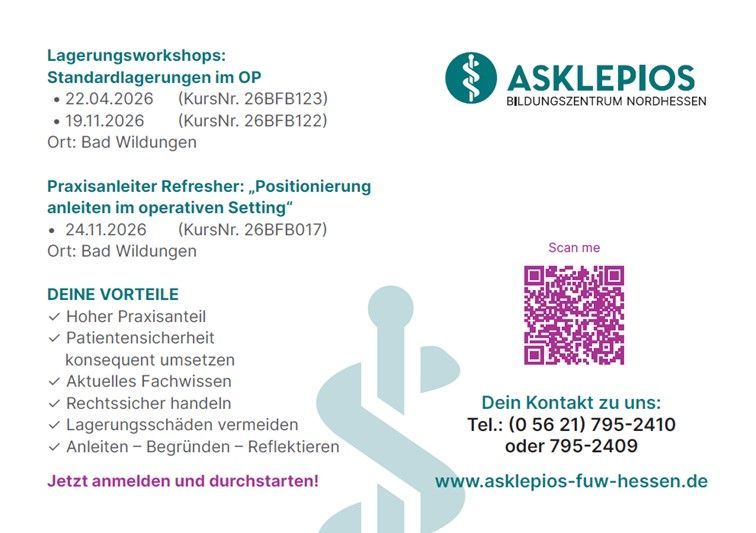 26BFB017 Refresher Praxisanleiter:innen für ATA/OTA: Positionierung anleiten im operativen Setting – sicher, präzise und rückenschonend